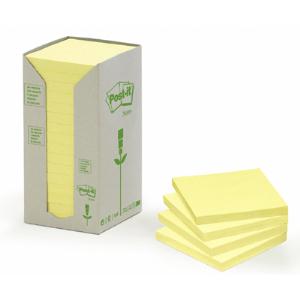 żółte karteczki, funkcjonalne i ekologiczne ilość karteczek: 16x100 w rozmiarze 76x76mm gramatura: 80gsm produkt i opakowanie w 100% z surowców wtórnych bloczki wykonane z całkowicie odbarwionego i utylizowanego włókna pakowane w karton zbiorczy, w którym pojedyncze bloczki nie są foliowane posiadają certyfikat BLUE ANGEL 16 sztuki w j.s. kolor żółty