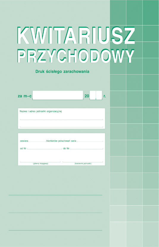 Kwitariusz MICHALCZYK I PROKOP A4 30 kartek Symbol: drk2290 Cena netto/brutto: 00.00 PLN / 00.00 PLN jednostka miary: sztuki Ilość Kwitariusz przychodowy, A-4, (o+2k)