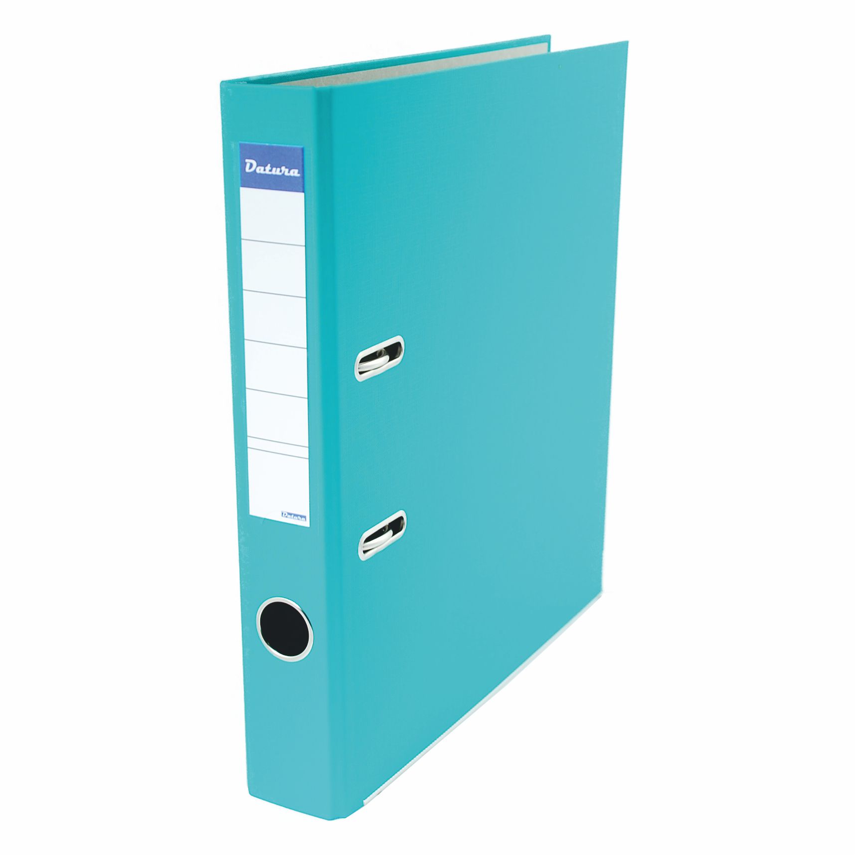 Segregator A4 Datura wykonany z grubego kartonu pokrytego folią, a wewnątrz jasnoszarym papierem dwustronna etykieta dolne krawędzie segregatora wzmocnione niklowanymi okuciami inne produkty na www.datura.pl jednostka sprzedaży 1 sztuka